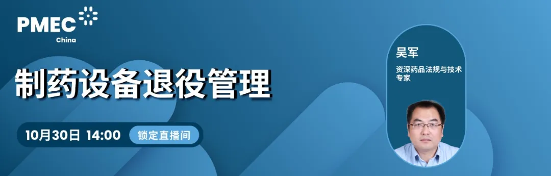 作为深耕制药工程领域数十年的专业平台,PMEC China始终聚焦行业真问题、硬需求。本次【制药设备退役管理】直播特邀业内资深专家与各位观众一起解构设备退役处理方案、聚焦风险合规关键要点、结合实践案例帮助药企建立科学、合规、高效的退役管理体系,真正让设备“退得合规、处置高效、无后顾之忧”。