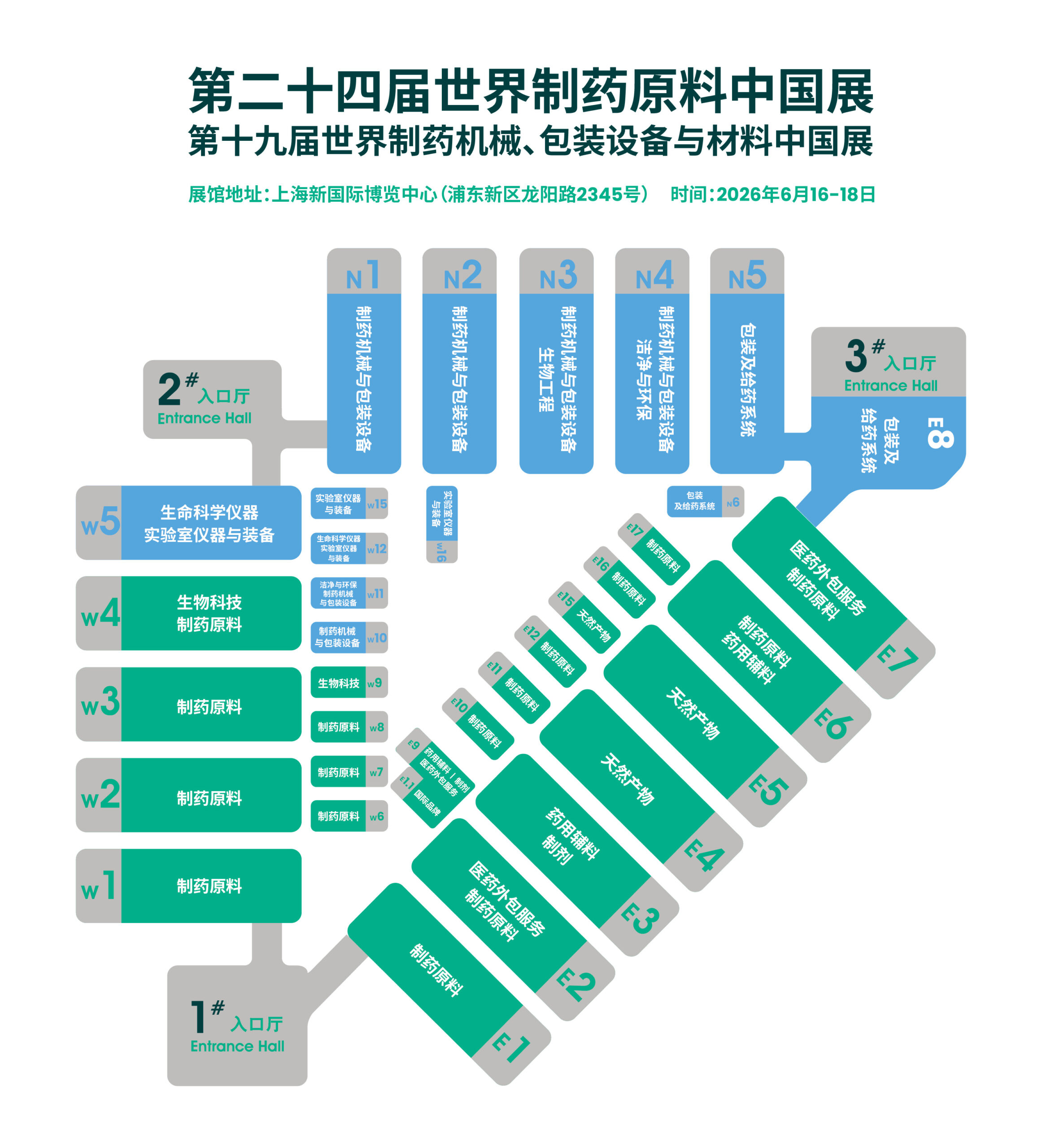 W1 – W4、W6 – W8、E1 – E2、E6 – E7、E10 – E12、E16 – E17馆: 制药原料