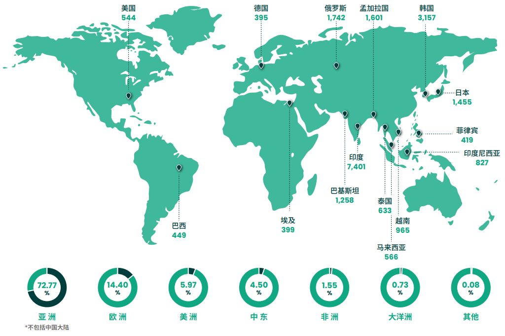 海外观众国家地区分布(参观人次排名 TOP 15)